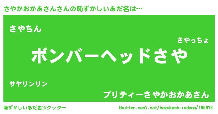 | 男性向けラノベタイトル風あだ名 | 『サヤカオカアサンスレイヤー』 |
