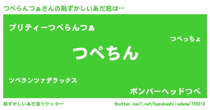 | 意味不明あだ名 | 『永久保存つぺらんつぁ』 |