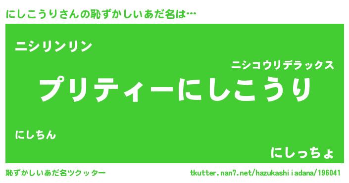 | 意味不明あだ名 | 『ペロリンにしこうり』『自称にしこうり』 |