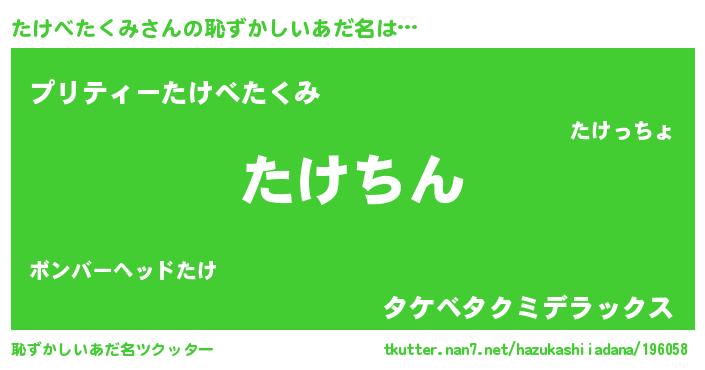 | ポケモン風あだ名 | 『メロタッケ』『タケゴンZ』 |