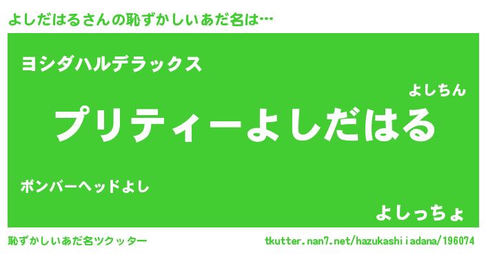 | 意味不明あだ名 | 『ペロリンよしだはる』『自称よしだはる』 |