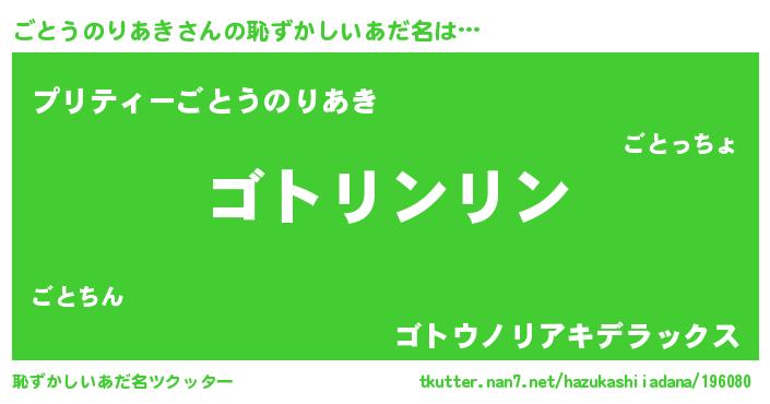 | 肩書あだ名 | 『ごとうのりあきリーダー』 |
