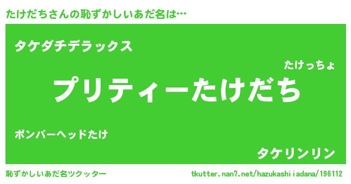 | ヘコむあだ名 | 『たけにー』『たけっ子』『なまこ酢』 |