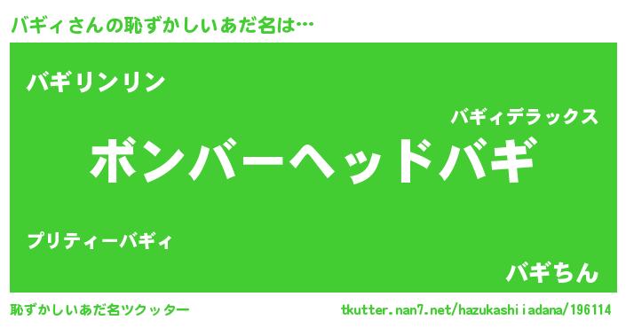 | ヒーロー風カッコイイあだ名 | 『慈愛の使者バギィ』『炎刃騎士バギ』 |