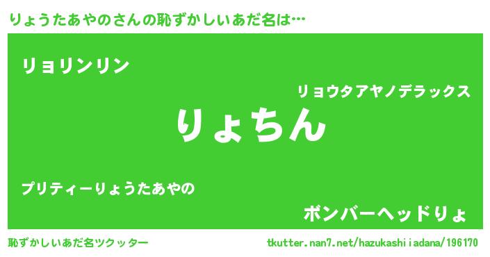 | ヒーロー風カッコイイあだ名 | 『ネオリョウタアヤノ』『仮面リョダー』 |