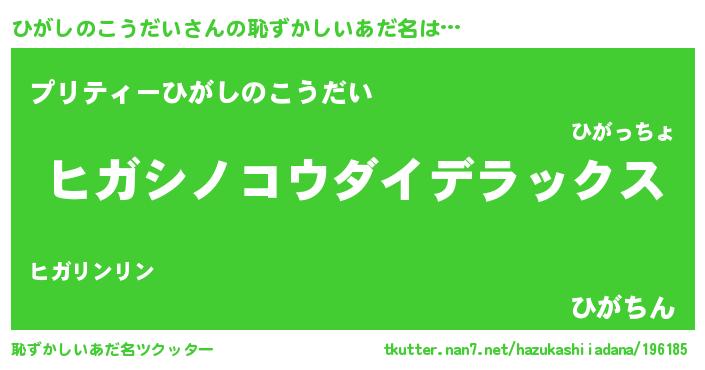 | ヘコむあだ名 | 『ひがふぇ~』『ひがしのこうだい(苦笑)』 |