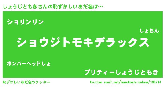 | 男性向けラノベタイトル風あだ名 | 『転生したらしょうじともきだった件』 |