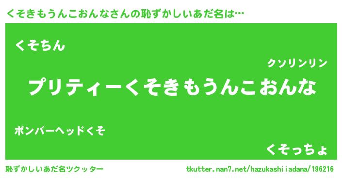 | ヒーロー風カッコイイあだ名 | 『スーパークソキモウンコオンナ』 |