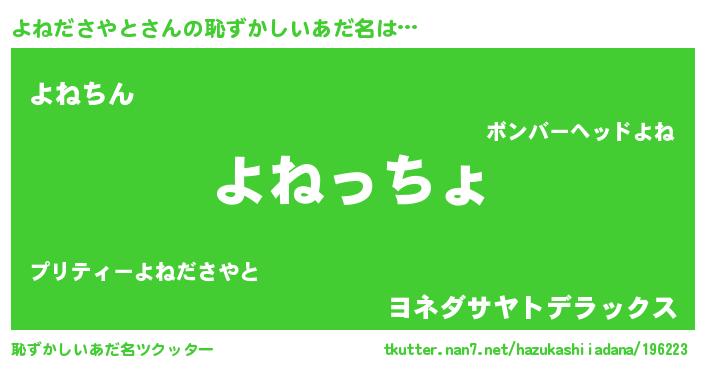 | ヘコむあだ名 | 『酢こんぶ』『よねださやと(笑)』 |
