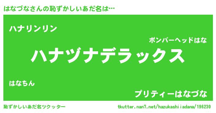 | ヘコむあだ名 | 『はな太郎』『はなっふぃ~』 |