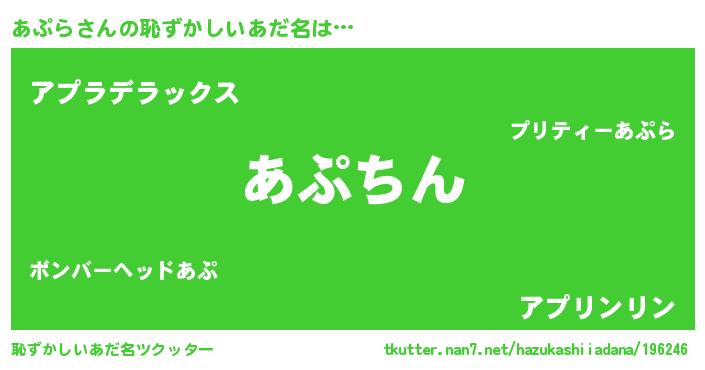 | ヘコむあだ名 | 『あぷら(遠い目)』『あぷ太郎』 |