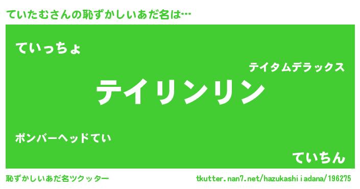 | 男性向けラノベタイトル風あだ名 | 『ていたむに滅ぼされるだけの簡単なお仕事です』 |