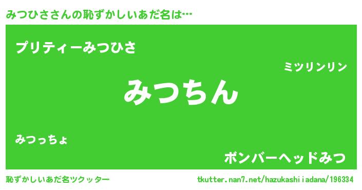 | ヘコむあだ名 | 『みつひさ(震え声)』『みつにー』 |