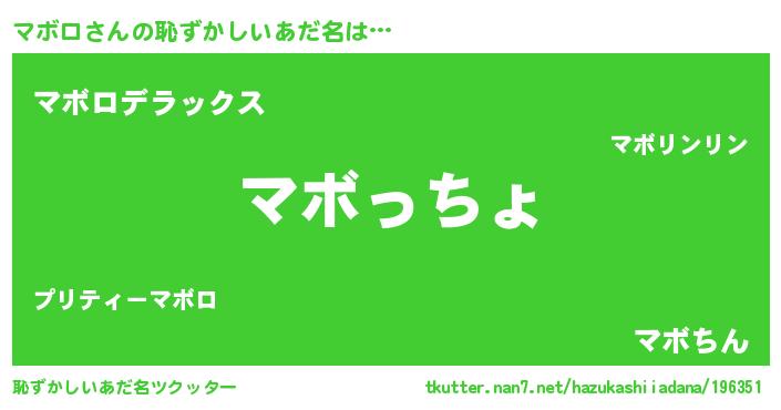 | ヒーロー風カッコイイあだ名 | 『仮面マボダー』『ウルトラマボロマン』 |