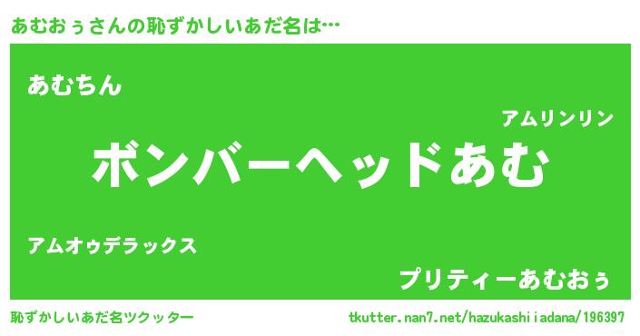 | ヘコむあだ名 | 『あむおぅ(震え声)』『あむにゅー』 |