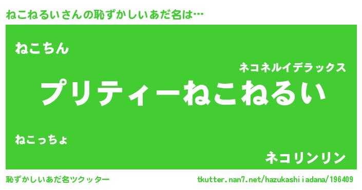 | 意味不明あだ名 | 『住所不定無職ねこねるい(81歳)』 |