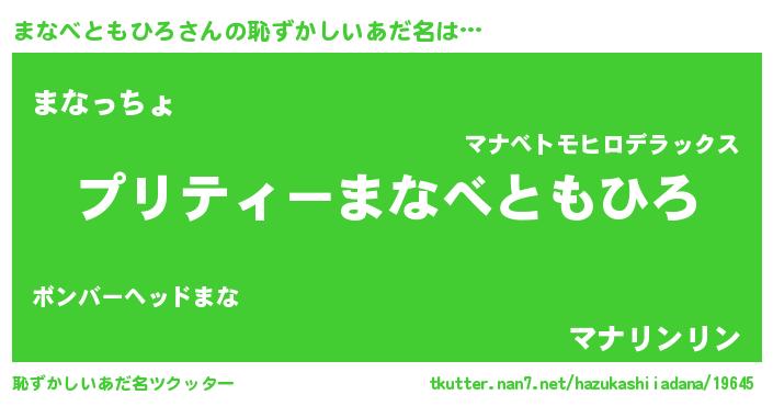 | 男性向けラノベタイトル風あだ名 | 『まなべともひろの憂鬱』 |