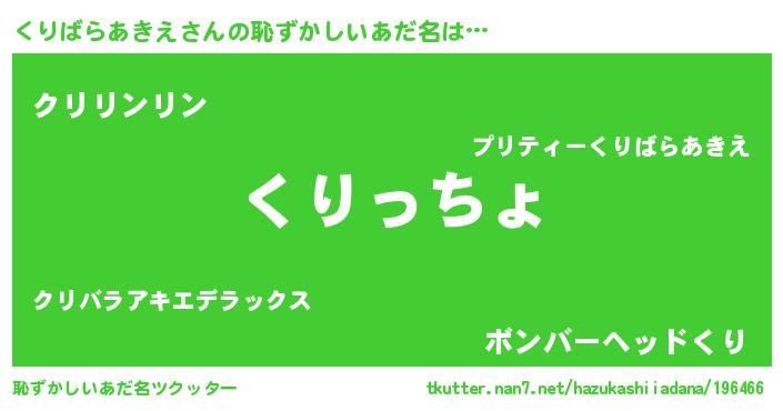 | ポケモン風あだ名 | 『クリバダネ』『ヒクリバラアキエ』 |