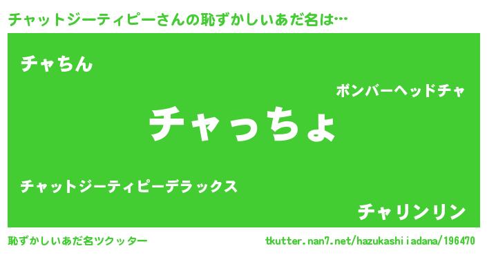 | 意味不明あだ名 | 『チャットジーティピーフォーエバー』 |