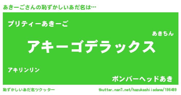 | ヘコむあだ名 | 『あきっふぃ~』『あきーご(小並感)』 |