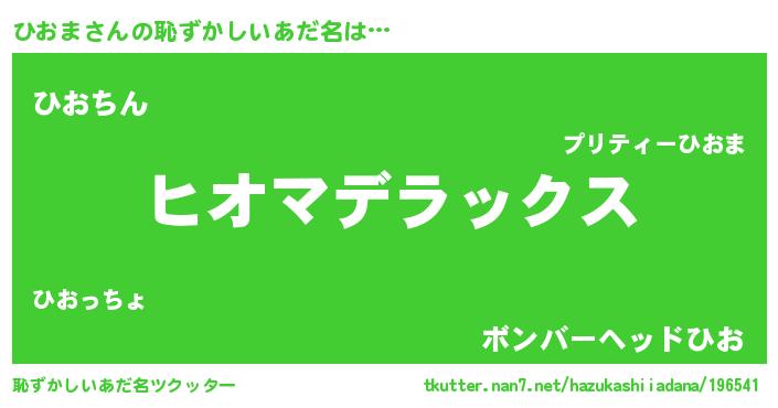 | ヘコむあだ名 | 『ひおま(笑)』『ひおっふぃ~』 |
