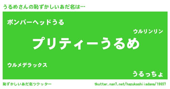 | ヒーロー風カッコイイあだ名 | 『スーパーウルメ』『友情の使者うるめ』 |