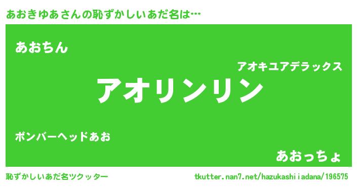 | ヘコむあだ名 | 『あお太郎』『あおきゆあ(笑)』 |