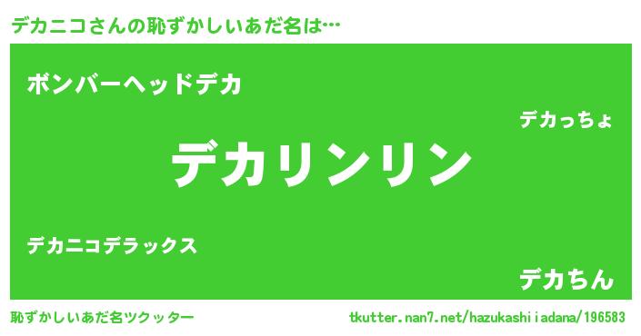 | 男性向けラノベタイトル風あだ名 | 『この素晴らしい世界にデカニコを!』 |