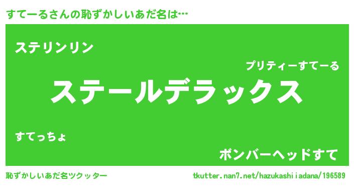 | 意味不明あだ名 | 『自称すてーる』『エリンギ科すてーる属』 |