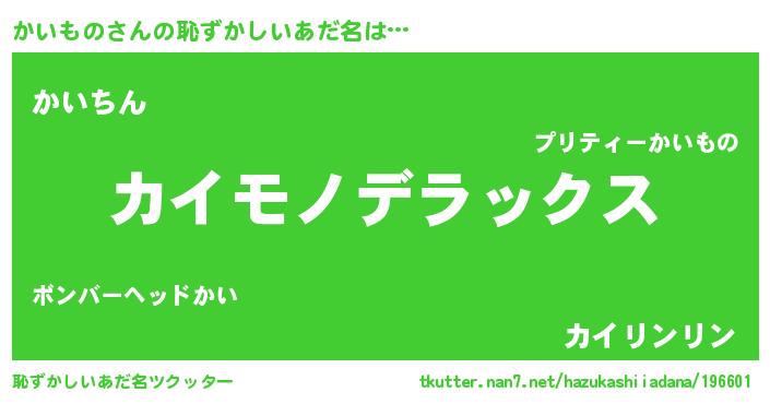 | 意味不明あだ名 | 『自称かいもの』『永久保存かいもの』 |