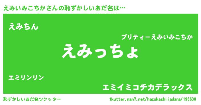| 意味不明あだ名 | 『えみいみこちかフォーエバー』 |