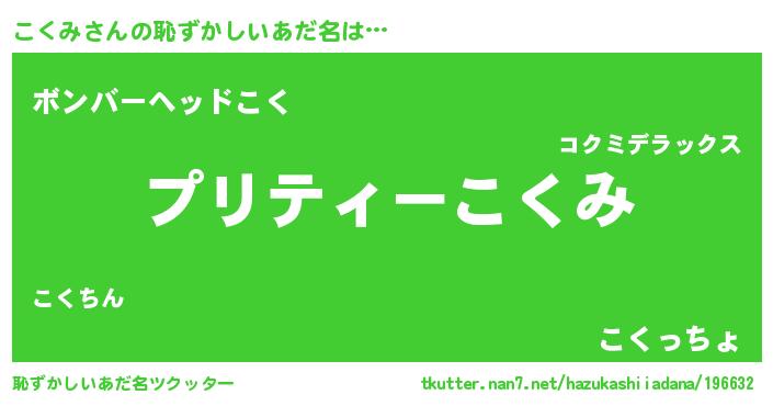 | 意味不明あだ名 | 『ペロリンこくみ』『こくみフォーエバー』 |