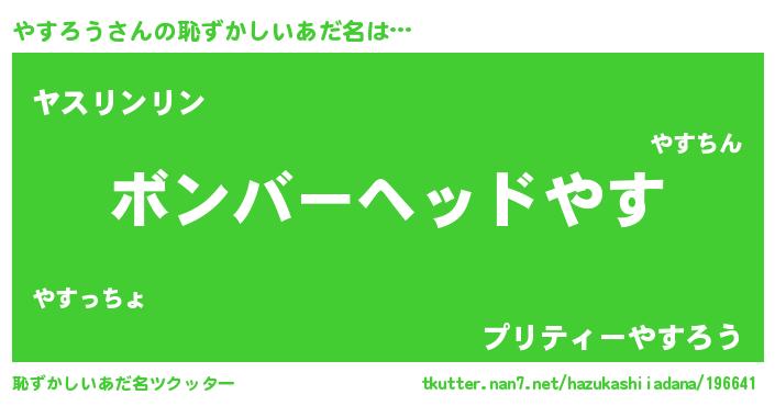 | ヒーロー風カッコイイあだ名 | 『正義の使者やすろう』『仮面ヤスダー』 |