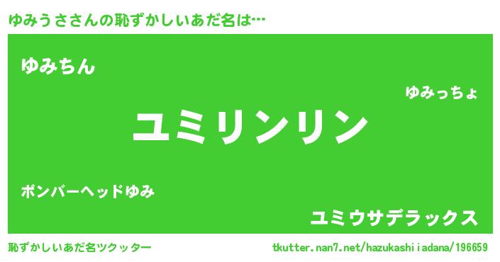 | ヘコむあだ名 | 『ゆみお』『ゆみうさ(苦笑)』 |