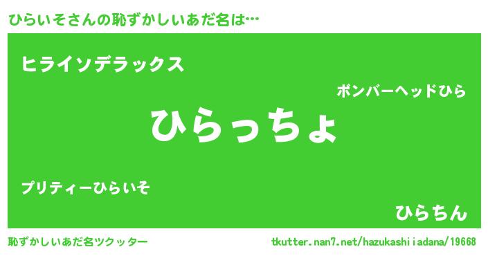 | ファンタジー風あだ名 | 『エターナルヒライソー』『ゼヒラトゥ』 |