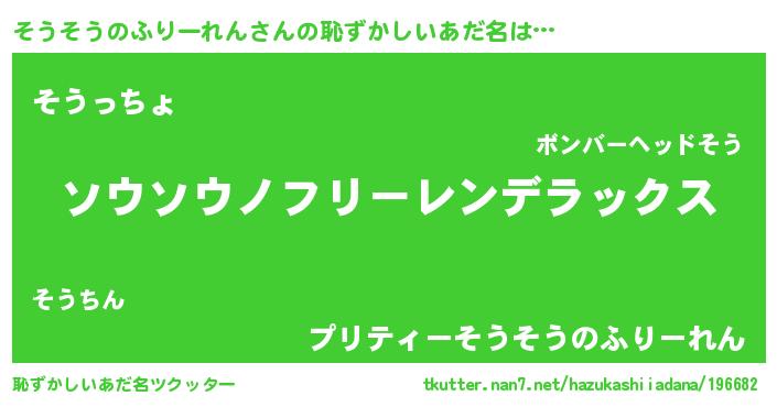| 意味不明あだ名 | 『自称そうそうのふりーれん』 |