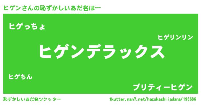 | 男性向けラノベタイトル風あだ名 | 『Re:ヒゲンから始める異世界生活』 |