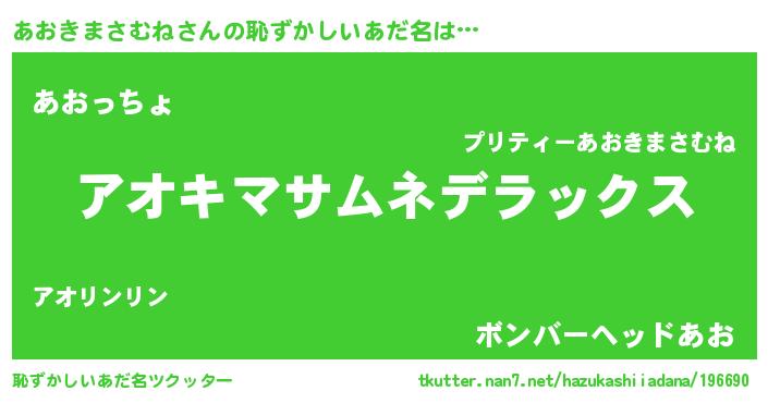 | 意味不明あだ名 | 『自称あおきまさむね』 |