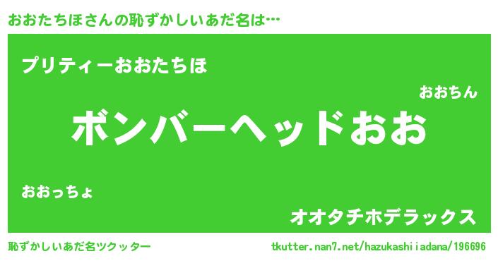 | 男性向けラノベタイトル風あだ名 | 『おまえをオタクにしてやるから、俺をおおたちほにしてくれ! 』 |