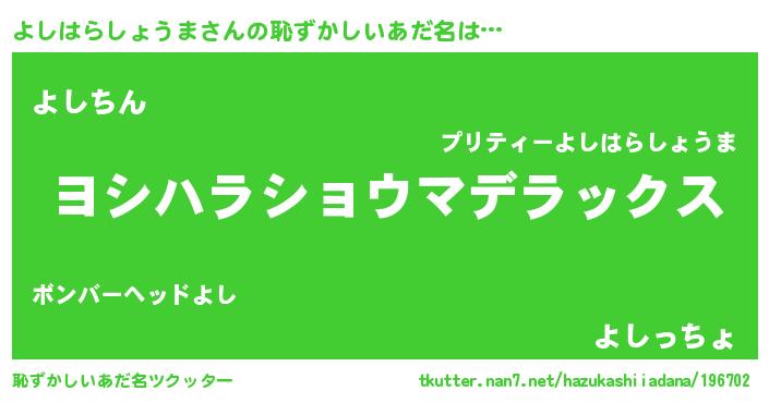 | ヘコむあだ名 | 『よしはらしょうま(震え声)』『なまこ酢』 |