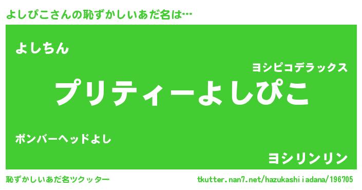 | 欧米人風あだ名 | 『アンジェラ・よしぴこ』 |
