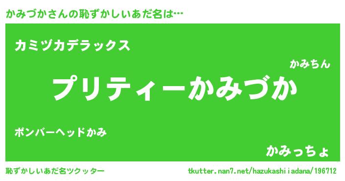 | ヒーロー風カッコイイあだ名 | 『スーパーカミヅカ』『最強戦士カミヅカ』 |