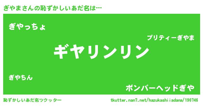 | 胡散臭い通販商品みたいなあだ名 | 『信頼と実績のネックレス…その名も「ぎやま」』 |
