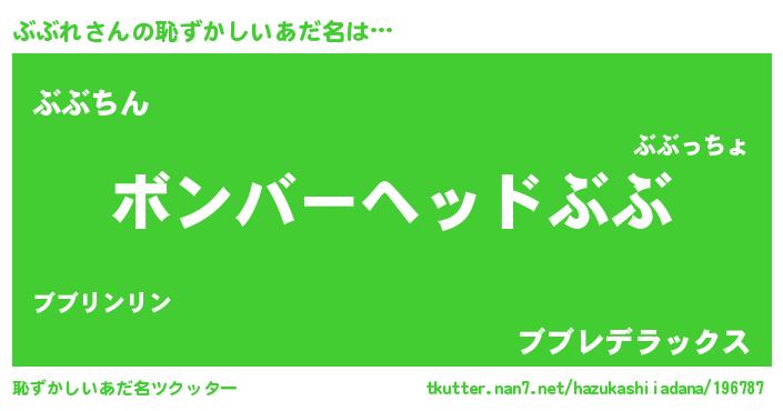 | 男性向けラノベタイトル風あだ名 | 『おまえをオタクにしてやるから、俺をぶぶれにしてくれ! 』 |