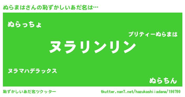 | ヘコむあだ名 | 『ぬらを』『つくし』『ぬらまは(笑)』 |