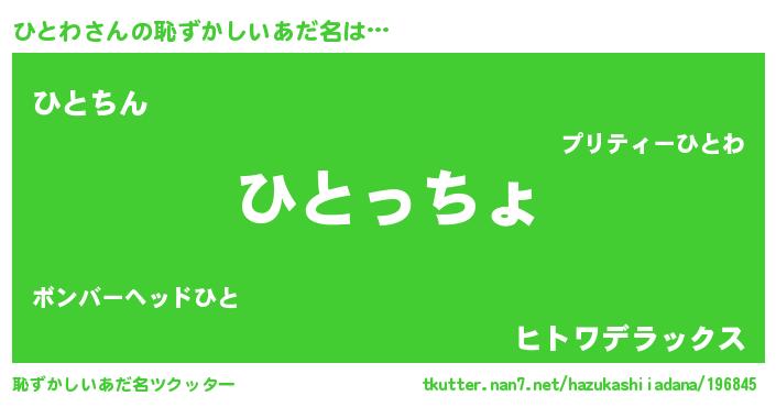 | 意味不明あだ名 | 『ひとわフォーエバー』『永久保存ひとわ』 |