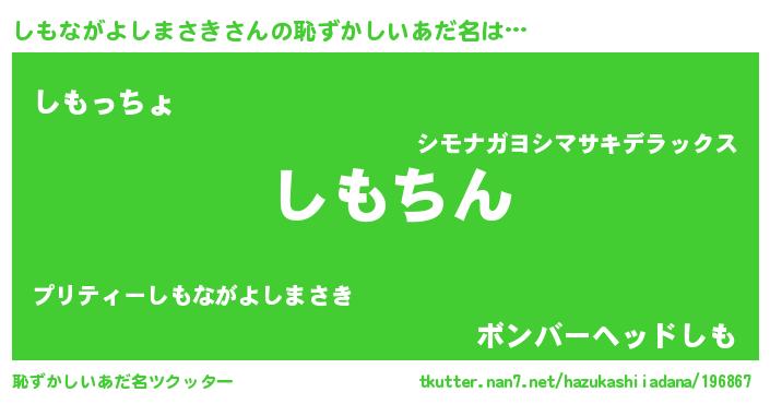 | ヘコむあだ名 | 『しもながよしまさき(笑)』『つくし』 |