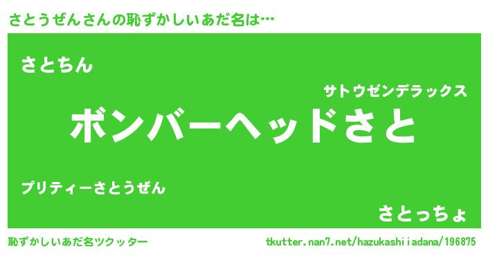 | 男性向けラノベタイトル風あだ名 | 『おまえをオタクにしてやるから、俺をさとうぜんにしてくれ! 』 |