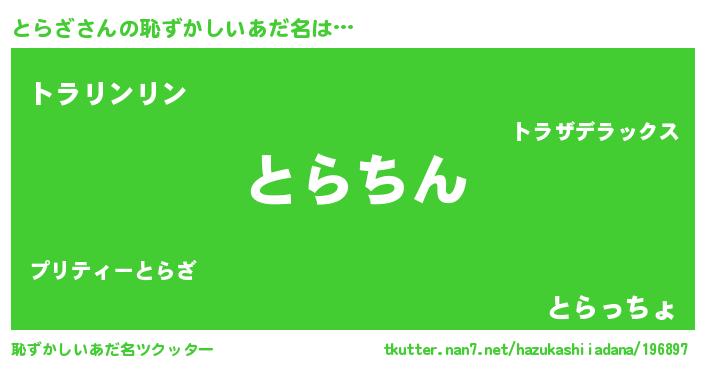 | 意味不明あだ名 | 『永久保存とらざ』『とらざフォーエバー』 |