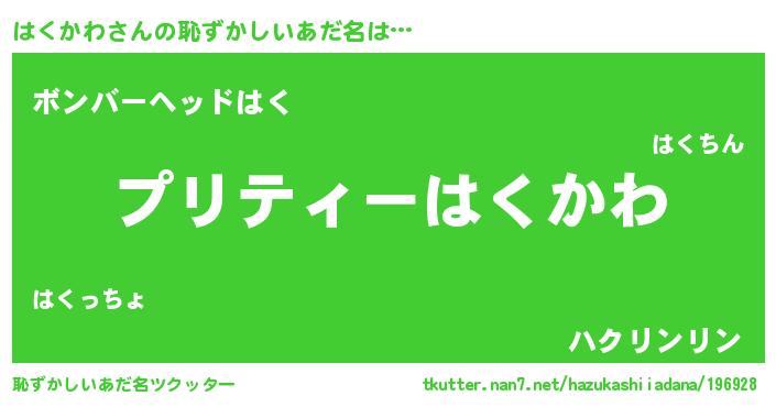 | ヒーロー風カッコイイあだ名 | 『スーパーハクカワ』『仮面ハクダー』 |